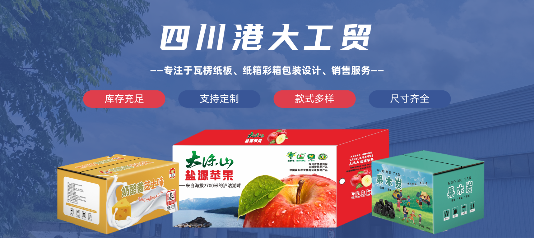 四川港大工貿有限公司成立于2014年3月,專注于瓦楞紙板、紙箱、彩箱包裝設計、生產、銷售服務。公司注冊資金1000萬元,占地4萬平方米,廠房面積2萬多平方米,位于樂山市夾江縣經濟開發區,距離樂山20公里,成都100公里,具有得天獨厚的地理條件和交通優勢。 公司技術力量雄厚,生產設備,管理規范,具有產品設計、研發、制造能力,現有國內的五層高速瓦楞紙板生產線及全智能化物流系統、一體化全伺服高精度的七色彩印機,高速印刷模切機,全自動模切機,全自動裱紙機,高速全自動粘、釘箱機等全自動高